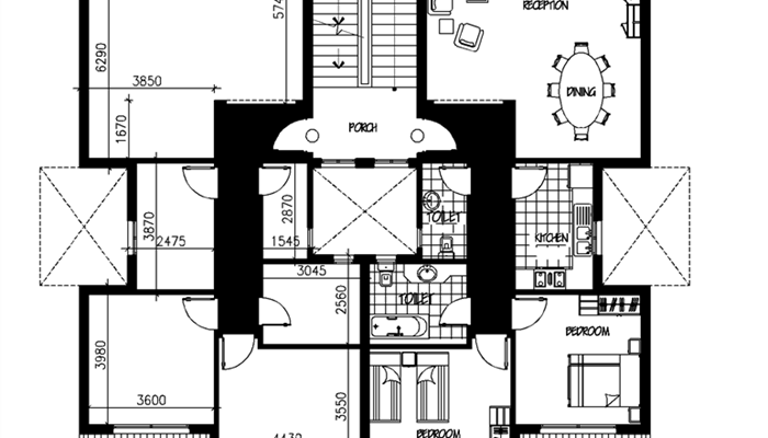 غرفة نوم ماستر بحمام+ 2 غرفة نوم + 2 حمام لخدمة الغرف + مطبخ + ريسيبشن