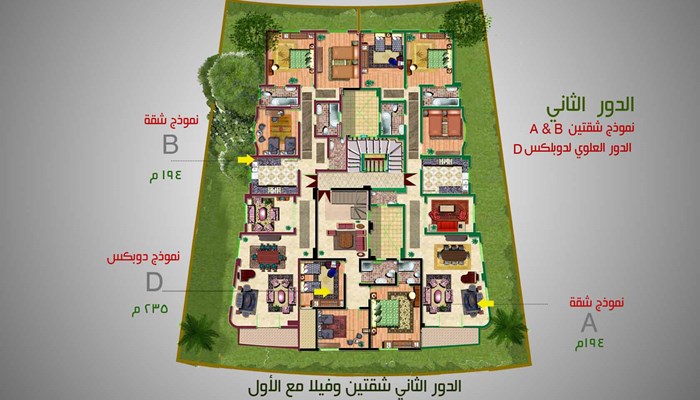 دوبلكس دورين أول و ثاني - على شارع البستان -235م - تسهيلات 3 سنوات