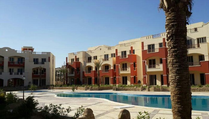 شاليه 90م ارضى بحديقه سوبر لوكس بالفرش بقريه بالعين السخنه على البحر مباشره