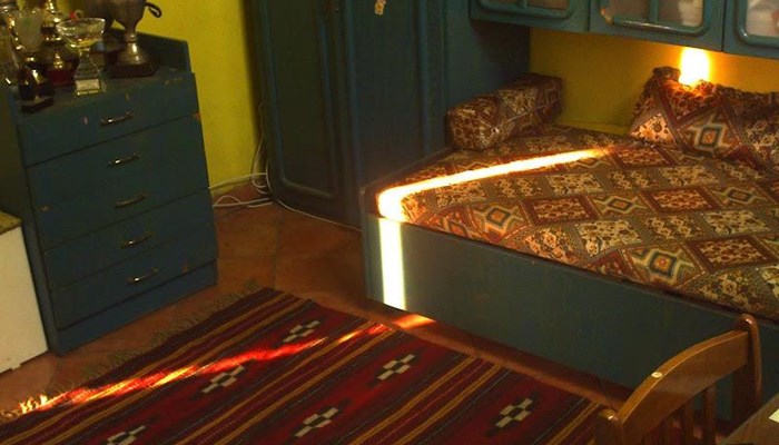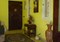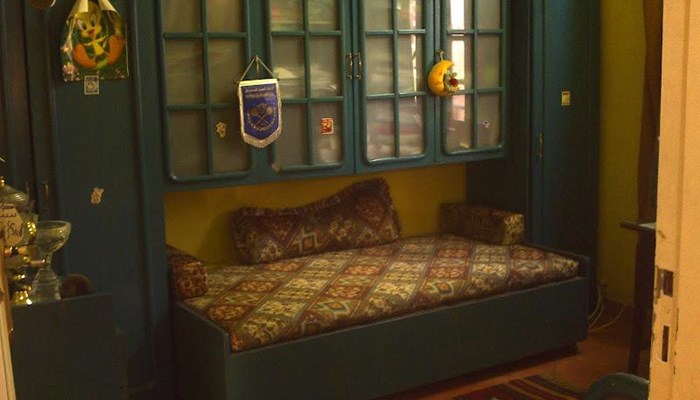 صالة الاستقبال أرضيات سيراميك –– باب جرار من خشب الأرو و الزجاج المصنفر و الخشب يفصل بين جزء لغرفة و جزء لغرفتين