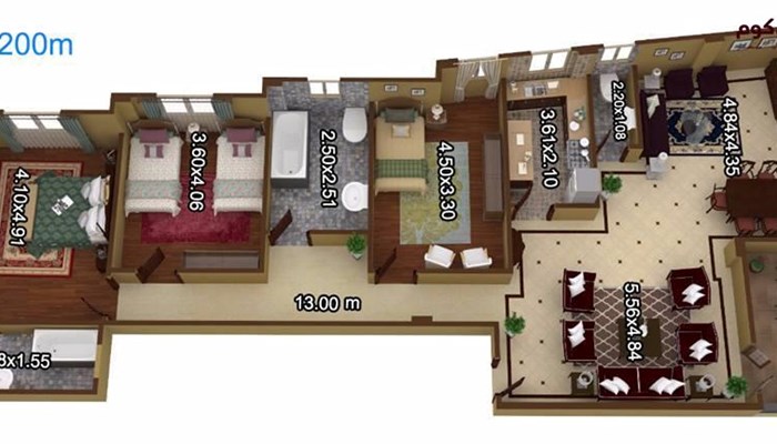 تتكون من : 3 نوم - 3 حمام - 3 ريسبشن - مطبخ - تراس