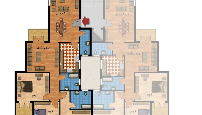 3 نوم + 3 حمام + ريسبشن + تراس + خدمات فندقية كاملة