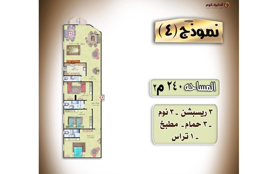 3غرف نوم+2حمام+مطبخ+ريسبشسن 3قطع