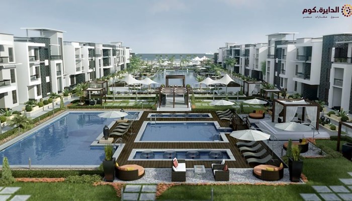 الشاليه علي حمام سباحه ويري البحر برؤيه واضحه